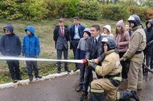 Для школьников огнеборцы провели показательную пенную атаку. Ученики сбивали напором воды из пожарного ствола мишень, резали пруты арматуры гидравлическим аварийно-спасательный инструментом, попробовали на вкус воздух в дыхательном аппарате газодымозашитника, облазили вдоль и поперек пожарный автомобиль!