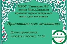 Муса Җәлил исемендәге 1 нче гимназия hәр шимбә көнне 12.00 сәгатьтә җәмәгатьчелек өчен татар теленнән укулар уткәрә.