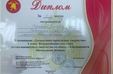 Ученица 1 А класса Гареева Диляра заняла третье место в номинации "Декоративно-прикладное творчество" I этапа Всероссийского конкурса детско-юношеского творчества по пожарной безопасности "Неопалимая Купина".