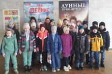 Во время весенних каникул ученики 3а класса посетили кинотеатр "Восход". Ребята посмотрели увлекательный фильм "Шимпанзе под прикрытием".