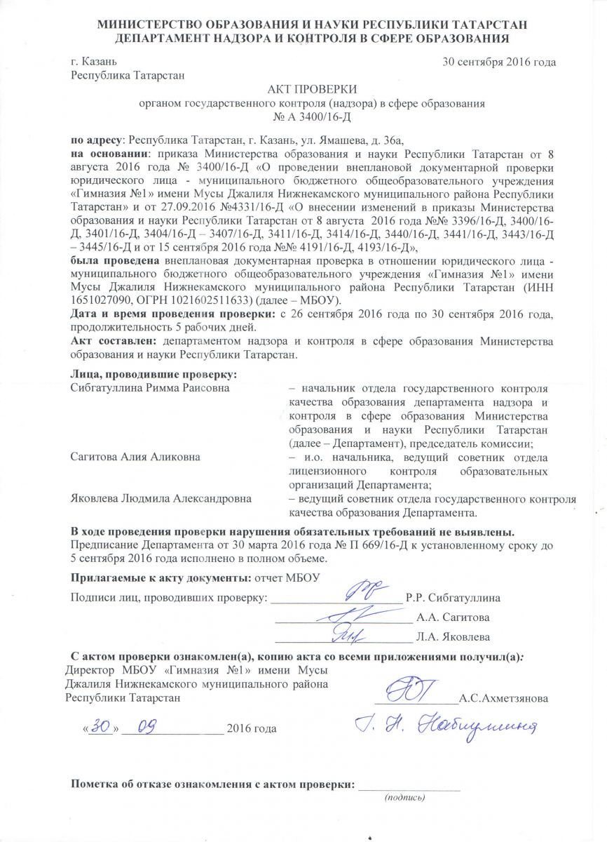 | Короткое название: | МБОУ "Гимназия №1" НМР РТ |