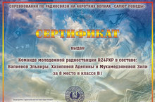 Апрель аенда уткән, радиоспорт буенча Россия ярышларында безнең укучылар 8 - нче урынны яуладылар. Радиотехника түгәрәге житәкчесе Ильяс Бикбаев. Котлыйбыз!