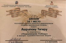 Безнең гимназия укучысы Ашрапов Таһир "Хезмәт белән яулап алынган Җиңү" дигән видеороликлар Республика конкурсында катнашты һәм "Җиңү бүләк иткән өчен"номинациясендә мактаулы 1 урын яулады. Котлыйбыз. Киләчәктә дә уңышлар телибез.