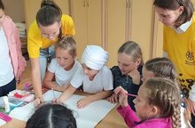 Сегодня активисты клуба "Сәләт Түбән Кама" вместе с учащимися 4 д класса рисовали плакаты на 55 летие родного города.