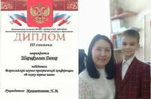 Во всероссийской научно-практической конференции "В науку первые шаги" ученик 3 в класса Шарифуллин Данир (руководитель: Мухаметьянова Ч.М.) награждён дипломом III степени.