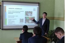 Учащийся 10 в класса, Сафиуллин Марсель выступил с экологическим уроком и осведомил учеников 10 В класса о том, как можно вступить в ряды волонтёров.