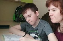 Дистанционное обучение в младших и средних классах невозможно представить без помощи родителей. Даутов Рафаэль, ученик 3г класса с мамой на уроке русского языка. -