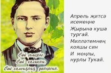 Бүген бөек шагыйребез Габдулла Тукайның тууына 134 ел. Габдулла Тукай 1886 елның 26 апрелендә элекке Казан губернасы Мәңгәр волосте (ТАССР Арча районы) Кушлавыч авылында туа. Кечкенәдән ятим калган, балачагы гаять авыр һәм катлаулы узган Габдулла бик кыска гомерле була. Нибары 26 ел яшәп, 1913 елның 15 апрелендә гомере өзелә. Габдулла Тукай — татар шигъриятенең иң якты йолдызы. Шагыйрь калдырган иҗат мирасы — безнең мактанычыбыз һәм горурлыгыбыз. Укучыларыбыз шагыйребезнең иҗатыннан әсәрләр укыйлар, инстаграмда карарга була.