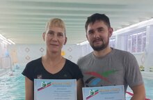 Победители XXI Cпартакиады работников образования в соревнованиях по плаванию Исаева Л.А. и Марданшин И.М.