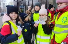 В рамках Всемирного дня памяти жертв ДТП учащиеся 2Г класса подарили первоклассникам светоотражающие элементы