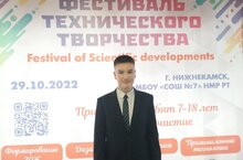Учащийся 7 "Г" класса Уфимцев Артур занял первое место на фестивале технического творчества. Руководитель Попов Анатолий Иванович, учитель технологии