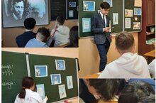 Сегодня 15 февраля на базе нашей гимназии совместно с библиотекой "Заман" был проведен классный час в 5 Д классе, посвященный дню рождения поэта Мусы Джалиля. Учащиеся посмотрели видеопрезентацию о жизни и творчестве поэта. Рассказывали его стихи и подготовили выставку рисунков по творчеству писателя.