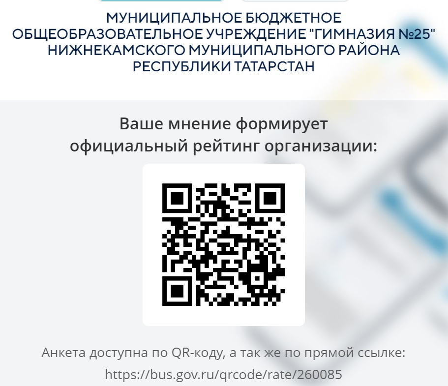Ваше мнение формирует официальный рейтинг организации. Анекта доступна по QR-коду и прямой ссылке https://bus.gov.ru/qrcode/rate/260085