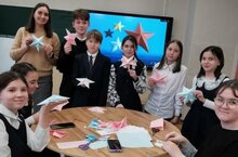 В рамках месячника гражданско - патриотического воспитания в гимназии 32 проходят мероприятия ко Дню защитника Отечества. Сегодня советник по воспитанию Динара Рустемовна провела мастер - класс по изготовлению объёмных звёзд. Эти звезды украсят стены нашей гимназии