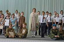 Ребята читали стихи, исполняли военные романсы, танцевали. Все присутствующие почтили память погибших Минутой молчания. -