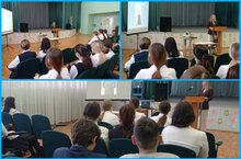 Сегодня для учащихся 9 классов гимназии в рамках профориентационной работы прошла встреча с представителями Нижнекамского педагогического колледжа. Перед ребятами выступила Рамазанова Татьяна Викторовна, преподаватель педагогики, она показала видеоролик о колледже, рассказала об основных особенностях обучения и ответила на вопросы учеников.