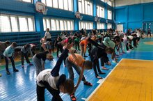 Каждый день в летнем пришкольном оздоровительном лагере "Солнышко" начинается с утренней зарядки. Ребята весело и дружно выполняют комплекс разминочных упражнений.