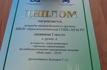 В целях популяризации авиации среди населения, повышения знаний молодежи в области авиации, а также ознаменования 85-летия со дня рождения советского летчика-космонавта Ю.А. Гагарина, прошли городские соревнования по свободнолетающим авиационным моделям «Небо зовет -2019!», где команда авиамодельного кружка нашей школы заняла 1 место. Ура! Поздравляем с победой ребята.