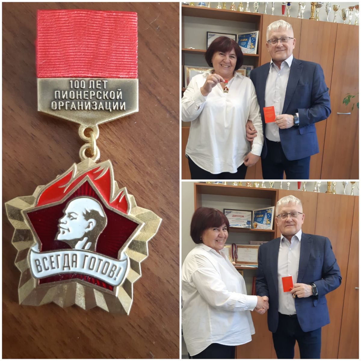 Депутат госсовета РТ Ягудин Альберт Ахметвагизович вручил памятную медаль первой пионервожатой школы Пестровой Зинаиде Васильевне -