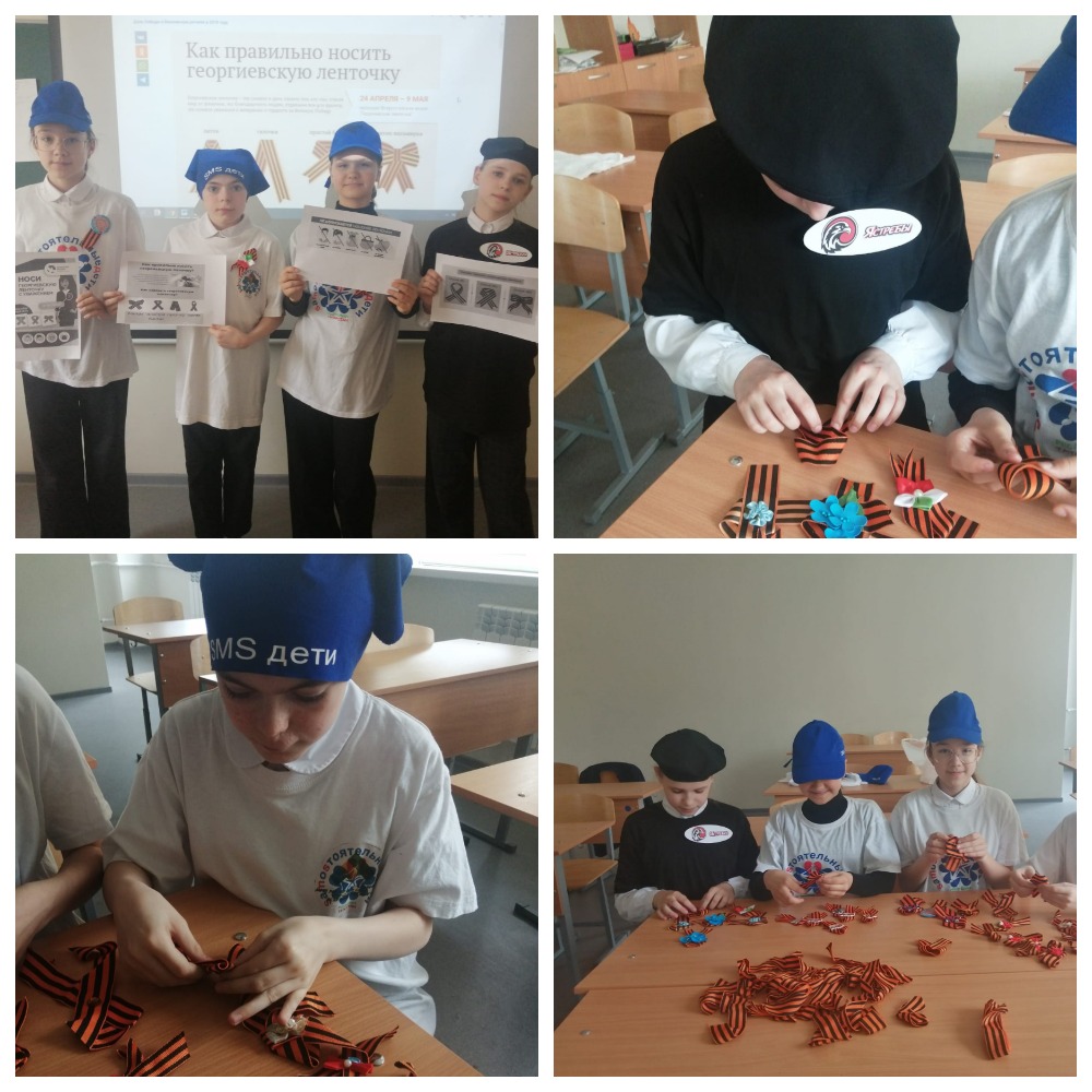 По всей России стартовала акция "Георгиевская ленточка". Сегодня волонтёры отрядов СМС дети, Ястребы, РДШ присоединились к акции и начали готовиться.