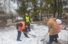 В очередной раз ребята из отряда "ЮИД" вооружившись лопатами и метлами, очистили памятник нашего села от снега и мусора.