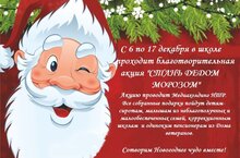 ВНИМАНИЕ! С 6 по 17 декабря в школе проходит благотворительная акция "Стань Дедом Морозом". Подарки принимаем в воспитательном отделе. Сотворим Новогоднее чудо вместе!