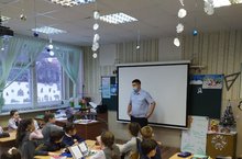 У нас в гостях был старший лейтенант полиции Галимов И.Т. с беседой для начальных классов на тему "Безопасность дорожного движения".
