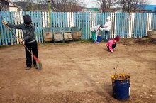 Ученица 2а класса Салимова Исламия участвует в семейном субботнике на территории возле дома. Маленький вклад в большое дело под названием «ЭКО-ВЕСНА 2020».
