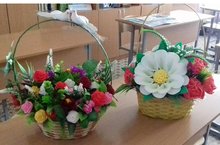 Обучающиеся Гришин Илья (7Б класс) и Сафина Олеся (3 класс) совместно с родителями под руководством Пестровой З.В. приняли участие в заочном муниципальном конкурсе открыток и цветочных композиций «БУКЕТ ВЕТЕРАНУ», посвященном празднованию 75-й годовщины Победы в Великой Отечественной войне 1941-1945 гг. Ими выполнены цветочные композиции из фоамерана. Над букетом трудились около месяца, но завершили ее уже дома. И теперь конкурсанты ждут оценки компетентного жюри.