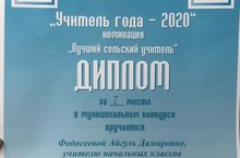 Завершился муниципальный конкурс профессионального мастерства «Учитель года 2020», в номинации сельский учитель победила учитель начальных классов Федосеева Айгуль Дамировна, ей вручили диплом 1 степени. Поздравляем и желаем новых успехов и достижений.