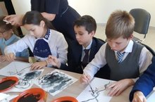 Необычный урок изобразительного искусства прошел в 5 классе под руководством Фалиной Л.Г. ребята посетили музей А. Фатхутдинова . Здесь прошел мастер- класс художницы Айзиряк Ахметовны Мустафиной по основам японской живописи. На таком уроке каждый хотел рисовать, и у многих получилось очень хорошо.