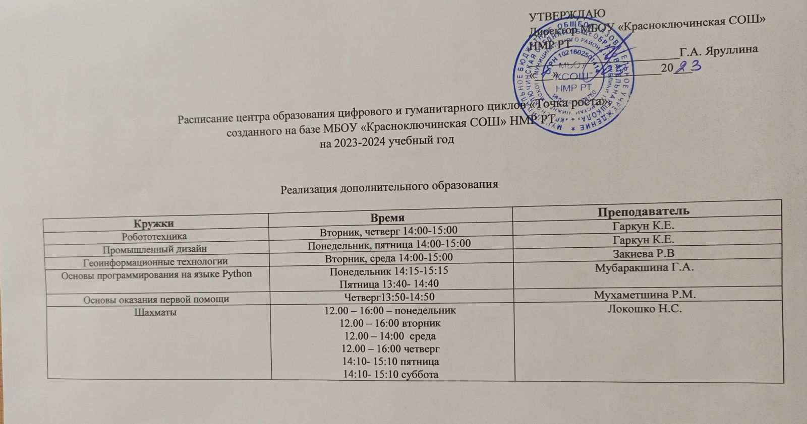 Расписание объединений ЦОЦиГП "Точка роста" на 2023-2024 уч. год