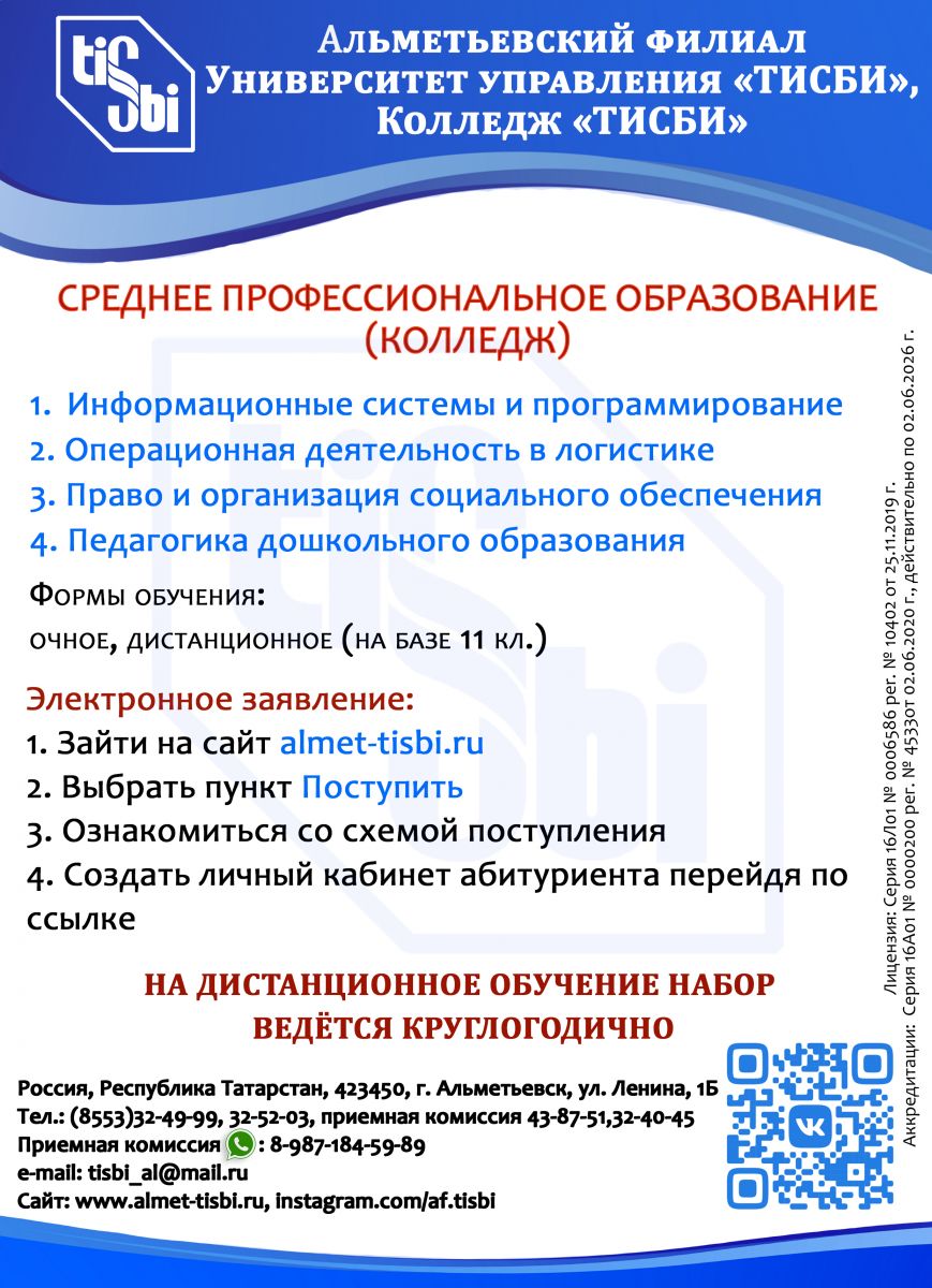 Альметьевский филиал Университет управления "ТИСБИ", Колледж "ТИСБИ"