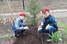 Активисты отряда «Юная армия» посадили саженцы лиственницы для будущей аллеи ветеранов.