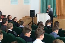 11 сентября в актовом зале среди 5-8 классов состоялась встреча с подполковником юстиции в отставке Зелениным Владимиром Тарасовичем.