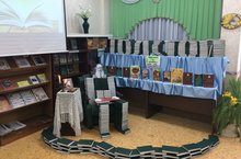 К конкурсу книжная инсталляция "Великие романисты"в школьной библиотеке организовали выставку.