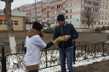 Учащиеся Камскополянской СОШ 1 провели среди жителей пгт Камские Поляны акцию "Георгиевская ленточка"