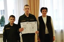 На фото: обладатель второго места в олимпиаде по русскому языку, кадет 5 класса Дмитрий Романов, серебряный призер конкурса экскурсоводов, кадет 10 класса Артур Ягафаров.