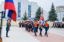 В шествии приняли участие три взвода: кадеты 21 взвода несли флаг России, кадеты 23 взвода – флаг РТ, ребята 25 взвода – флаг Нижнекамского района.