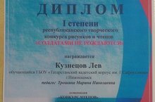 Диплом первой степени в республиканском конкурсе «Солдатами не рождаются» получил кадет 26 взвода Лев Кузнецов. Благодарственным письмом за подготовку победителя конкурса отметили учителя русского языка и литературы Марину Николаевну Трошину. Напомним: юноша проникновенно исполнил стихотворение Ольги Киевской «Баллада о матери». Поздравляем! Молодцы!