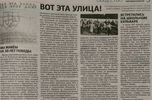 Недавно в местных печатных изданиях вышли материалы о наших ребятах. Так, в газете «Нижнекамская Правда» от 17 мая опубликован материал о встрече наших воспитанников с мэром Нижнекамска А.Метшиным. В издании «Ваша газета» от 15 мая вышла статья об истории возникновения улицы «30 лет Победы». В этом проекте приняли участие и наши ребята. Молодцы!