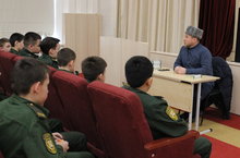 «Ты избрал путь служения Родине, надел форму, встал в строй, значит, ты необычный человек – тебя избрал Всевышний!», – с этих слов началась встреча кадет с имамом-мухтасибом Нижнекамского района Салихом хазратом. Гость поговорил с ребятами о чести и долге, уважении к старшим и младшим и на другие темы. Дети с интересом вели беседу с Салихом хазратом. Надеемся, каждый из ребят взял для себя что-то полезное из встречи.