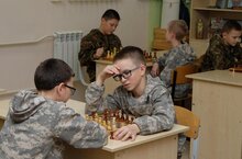 Вы только посмотрите на эти вдумчивые и сосредоточенные лица!Это наши шахматисты.В нашем корпусе работает кружок "Белая ладья".Руководителем является Нестеров Вячеслав Владимирович.