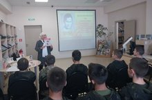 Тема лектория: "Курская дуга. Там, где плавилась броня". Ребятам был показан короткометражный фильм об истории сражения на Курской дуге.