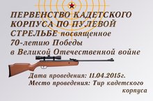 11 апреля 2015 года пройдет Первенство кадетского корпуса по пулевой стрельбе 08.04.2015
