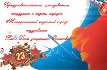 Офицеры-воспитатели, преподаватели, сотрудники и кадеты корпуса! Татарстанский кадетский корпус поздравляет вас с Днём защитника Отечества! 19.02.2015