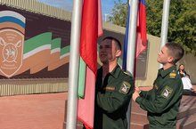 Утреннее построение понедельника традиционно началось с исполнения гимнов РФ и РТ, и поднятия флагов РФ и РТ.