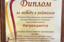Награждены за победу в рейтинге "Участие образовательных организаций в детском общественном движении города Нижнекамска" 20.05.2022