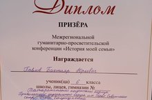 Поздравляем нашего воспитанника Павлова Бахтияра, ставшего Призером Межрегиональной гуманитарно- просветительской конференции "История моей семьи".