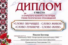 Поздравляем с победой в Открытом конкурсе "Слово звучащее - слово живое" 08.04.2021